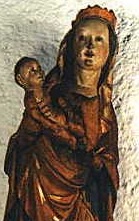 Die Muttergottes-Figur auf der Marienbildseite stammt aus der 1. Hälfte des 15. Jahrhunderts. Sie konnte 1980 für die Kirchengemeinde gekauft werden und sie betont in ihrer schlichten und einfachen schönen Art: Hier versammelt sich Gemeinde, die den Namen Mariens trägt und in der heiligen Mutter eine Helferin und Fürsprecherin bei Gott sucht.
